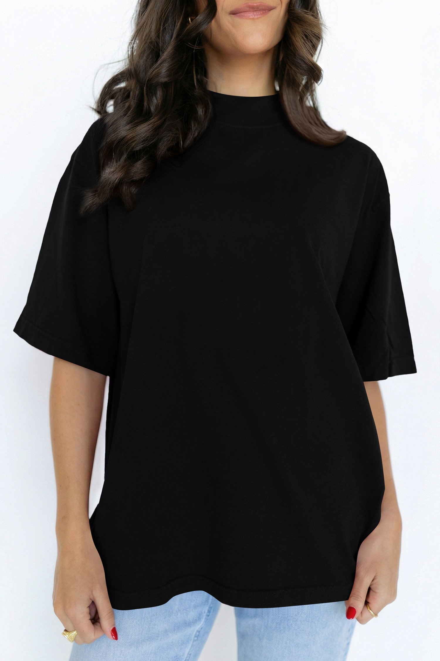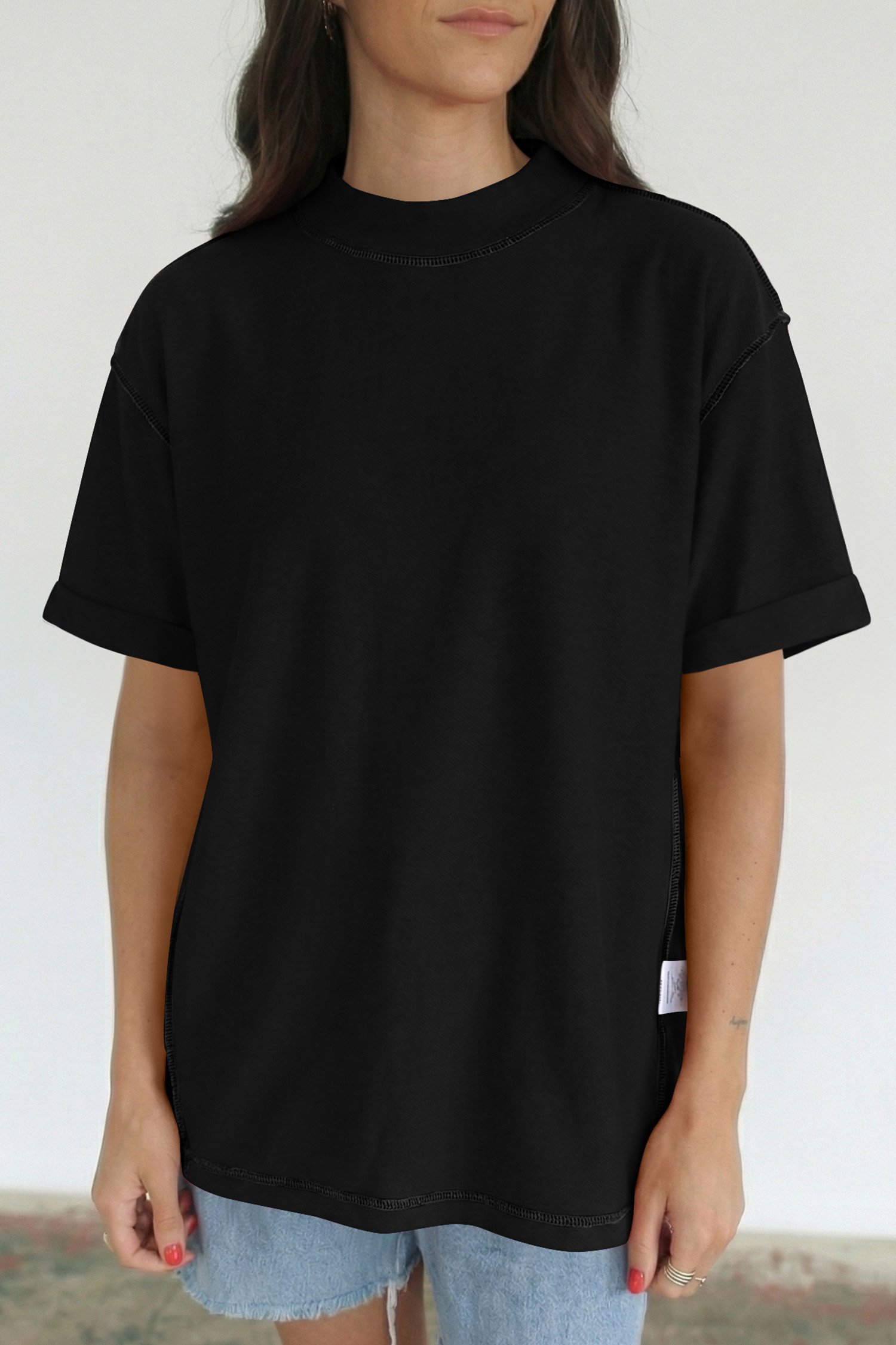 Be the first to review “Black Solid Color High Neck Oversize Tee”